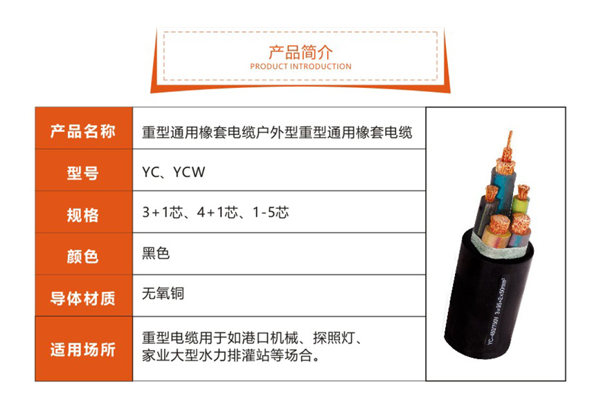 橡套電纜分為重型橡套軟電纜(YC電纜,YCW電纜),中型橡套軟電纜(YZ電纜,YZW電纜),輕型橡套軟電纜(YQ電纜,YQW電纜),防水橡套軟電纜(JHS電纜,JHSB電纜),電焊機電纜(YH電纜,YHF電纜)YHD電纜為野外用鍍錫電源連接線。